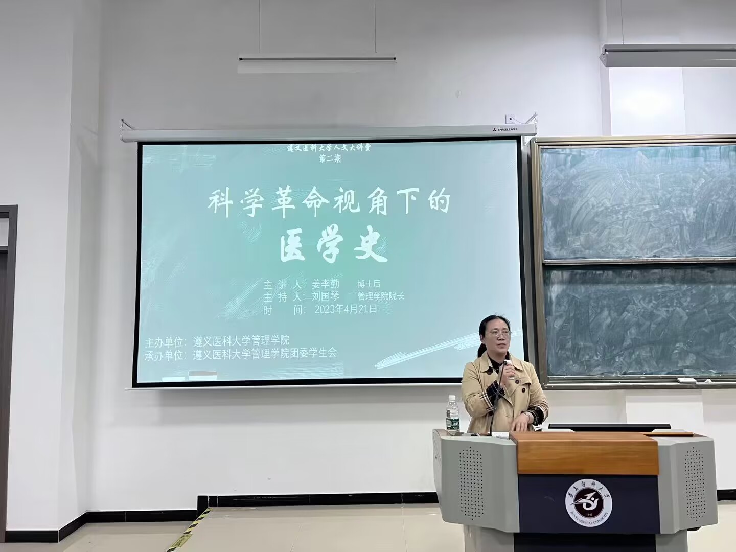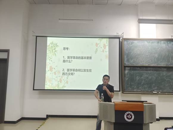 在世界读书日来临之际,为配合公司推广全民阅读,建设书香校园,向公司广大师生传播医学人文知识、提高文学素养,引领广大师生传承中华经典、弘扬民族文化,304永利集团官网入口于2023年4月21日晚上7点在第三教学楼18阶梯教室开展了“人文大讲堂”主题系列讲座第二期——《科学革命视角下的医学史》。本次讲座由304永利集团主办,304永利集团团委员工会承办,人文医学研究中心姜李勤博士后主讲,304永利集团经理刘国琴教授主持。