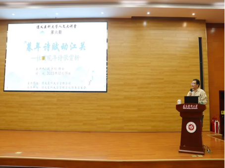 华夏情长,诗韵留香。为丰富校园文化生活,加强新时代人文教育,弘扬诗圣精神,凸显中华传统文化之美,304永利集团官网入口于2023年10月19日晚上7点在人文楼道德讲堂开展了“人文大讲堂”主题系列讲座第六期——《暮年诗赋动江关:杜甫晚期诗歌赏析》。本次讲座由304永利集团主办,304永利集团团委员工会承办,马克思主义公司赵宇翔博士主讲,公共基础教研室副主任张晏青老师主持。