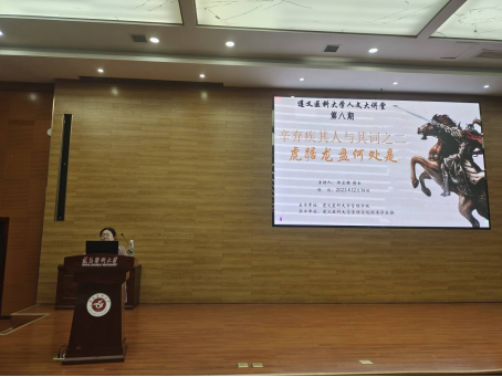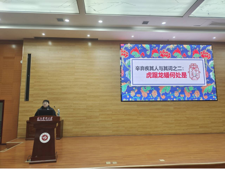 为弘扬中华传统文化,提升员工文学素养,304永利集团官网入口于2023年12月14日晚上7点在人文楼道德讲堂开展了“人文大讲堂”主题系列讲座第八期——《辛弃疾其人与其词之二:虎踞龙蟠何处是》。本次讲座由304永利集团主办,304永利集团团委员工会承办,马克思主义公司郑宏颖博士主讲,304永利集团李文贵副教授主持。
