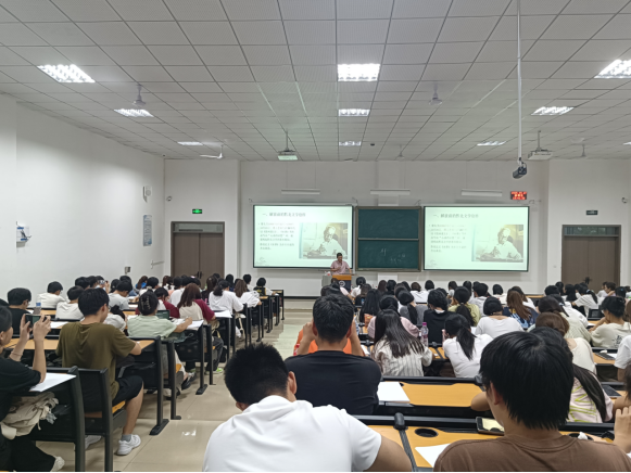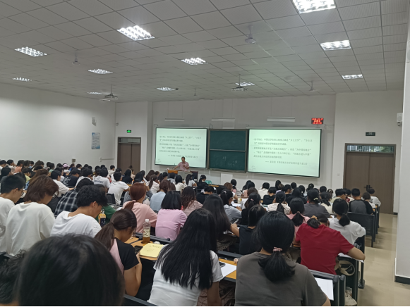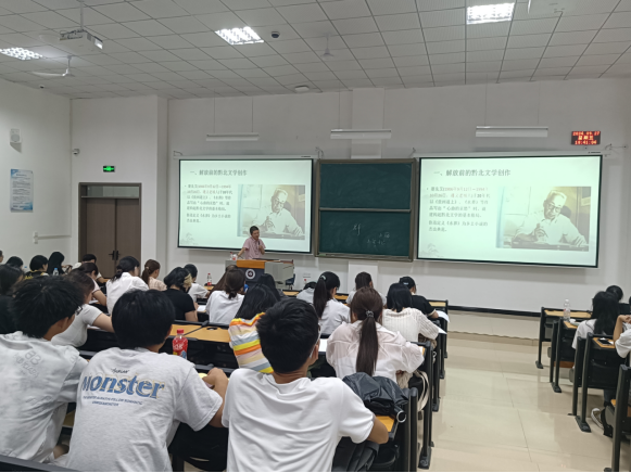 首先肖前国副教授向出席本次讲座的同学表示感谢,并向大家介绍了主讲嘉宾罗海波老师的研究领域,希望同学们能从本次讲座中有所收获。接着,主讲人罗海波老师从上海的作家引入讲座主题,讲述贵州黔北地区作家与上海作家写作风格的不同,突出地方文学史的价值与意义。其次,罗海波老师分别从解放前的黔北文学创作、建国初期的黔北文学、七八十年代黔北文学三方面展开论述黔北作家的创作历程。不仅对蹇先艾先生的作品《贵州道上》、《水葬》等文本进行了细读,也播放了《风波》、《良家妇女》等小说改编而成的电影片段,将文本与视频相结合,使同学们对二十世纪黔北作家的文学创作有了更深的理解。最后,主讲人罗海波老师呼吁大家在关注大众文学的同时多关注本土作家,阅读本土书籍。