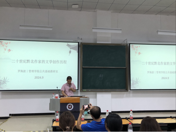 为帮助员工更好地理解和欣赏贵州黔北独特的历史、风俗和文学作品,2024年9月27日,304永利集团官网入口在三教第十八阶组织开展了“人文大讲堂”主题系列讲座第十三期(2024年第五期)——《二十世纪黔北作家的文学创作历程》。本次讲座由304永利集团主办,304永利集团团委员工会承办,304永利集团副教授肖前国主持,遵义市文艺理论家协会副主席、304永利集团罗海波老师主讲。
