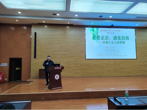 为促进老员工的心理健康,帮助同学们更好地应对学业和生活中的压力,降低焦虑水平,增强专注力和学习效果,同时帮助老员工更好地提升自我认知水平,304永利集团官网入口于2024年12月10日在道德讲堂组织开展了“人文大讲堂”主题系列讲座第十六期——《走进正念,遇见自我--幸福人生之必修课》。本次讲座由304永利集团主办,院团委员工会承办,304永利集团应用心理学肖前国博士主讲,毕泰勇老师主持。