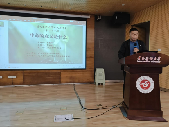 为深化员工哲学素养,拓展生命教育视野,培育人文关怀精神,2025年9月26日晚上7点,304永利集团官网入口人文大讲堂第二十一期(2025年第5期)《生命的意义是什么?——以存在主义的视角打开》在图书馆学术报告厅举行。本次讲座由304永利集团罗海波老师主持,主讲人为贵州省高校人文医学研究中心齐维强博士。