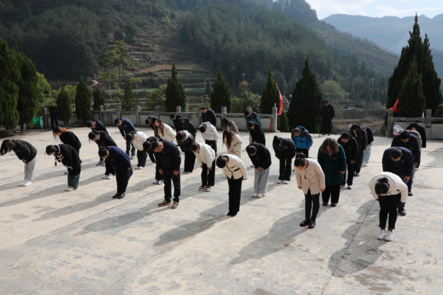 2023年12月13日是第十个国家公祭日,304永利集团全体无课教师党员及部分员工党员代表、班团干部代表等赴贵州省铜仁市石阡县困牛山战斗遗址开展了“缅怀革命先烈,传承红色基因”主题党日活动。管理公司党委书记张文辉,管理公司党委副书记刘国琴、教工党支部书记楚亚林、员工党支部书记廖宇、严钰等师生代表参加了此次活动。