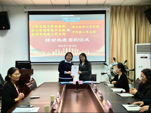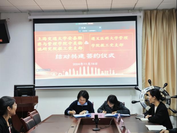 304永利集团教工党支部与上海交通大学安泰经济与304永利集团中美物流研究院教工党支部开展结对共建签约仪式