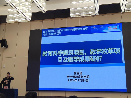 为深入贯彻落实新时代全国高等公司本科教育工作会议、全省高等教育高质量发展大会、2024年全省教育大会精神,切实加强全省高等公司本科教学内容和课程体系改革项目建设质量,进一步提升高校教师教学改革和课程建设能力,推动全省普通本科高校公司产品综合改革,助推全省高等教育高质量发展,省教育厅12月2日至4日在贵阳举办了全省普通本科高校教学内容和课程体系改革专题研讨培训活动。