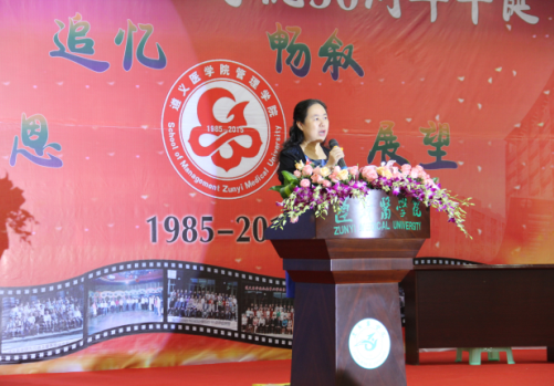 Subsequently, Associate Dean Professor Liu Guoqin speech, she first long-term care and support School leaders at all levels of development of various undertakings expressed deep gratitude for the celebration of the guests come from afar and alumni warmest welcome. She noted that three decades School of Management, has been adhering to the "Matilda Duxue, seeking practical" motto, to "cultivate high-quality application-oriented management of public utilities talent" as the goal, adhere to the "both medicine and management, facility management and humanities, theory and application integration "concept, based in Guizhou, serve the grassroots, radiation west, in terms of student training, teachers, subject construction, scientific research development, foreign exchange and social services have made remarkable achievements. Finally, she called on all managers with the times, look to the future, compose a new chapter.